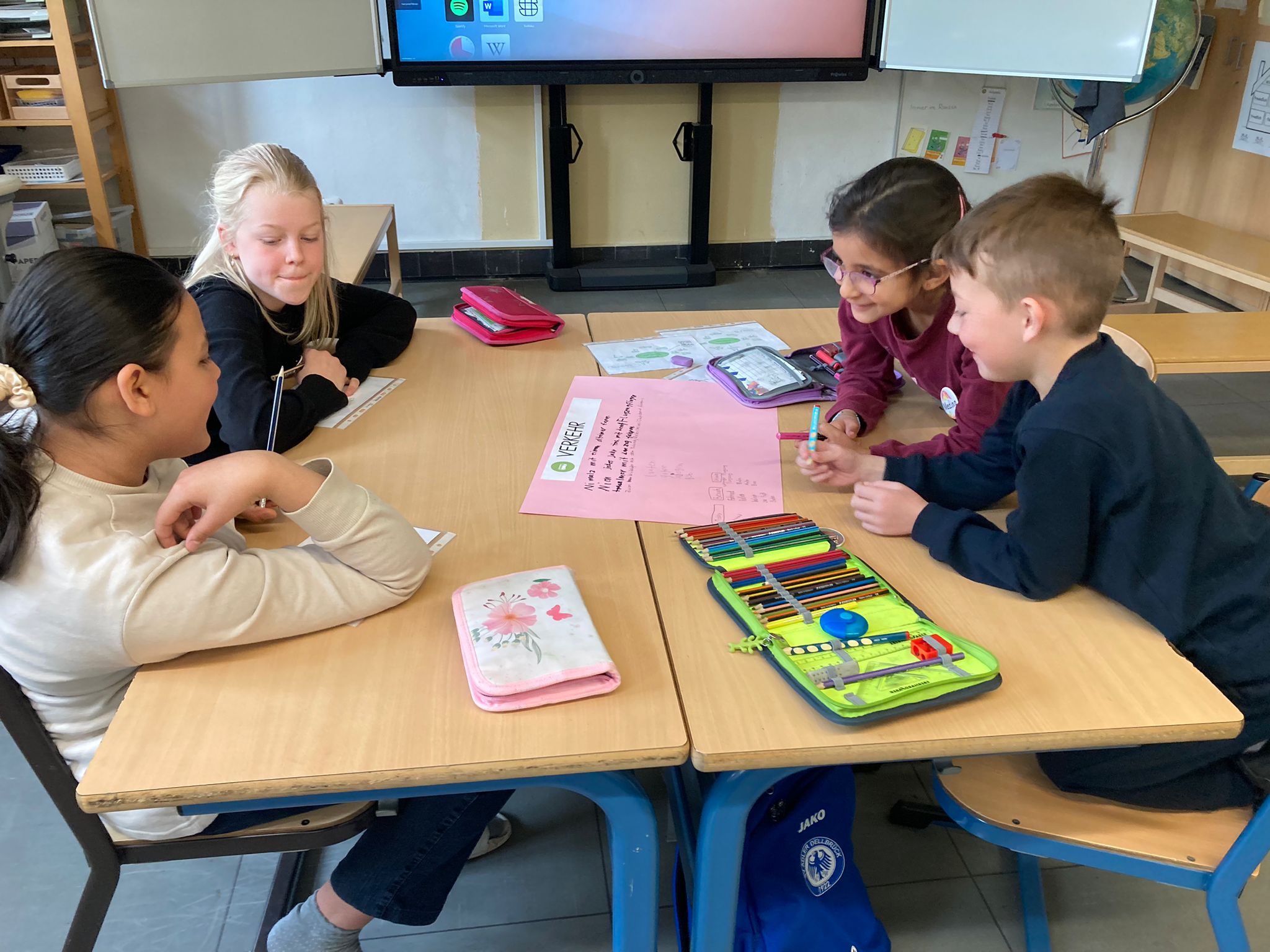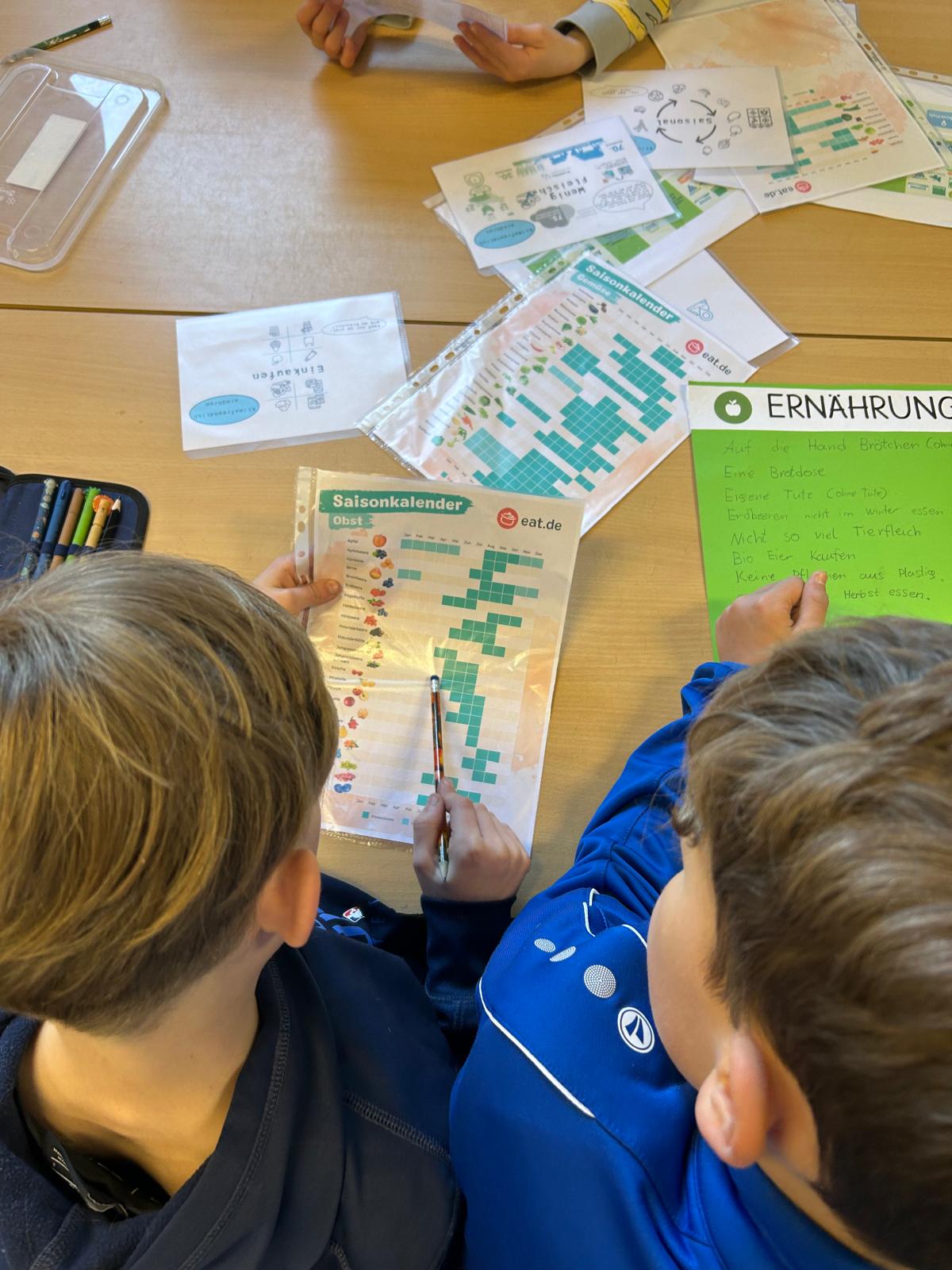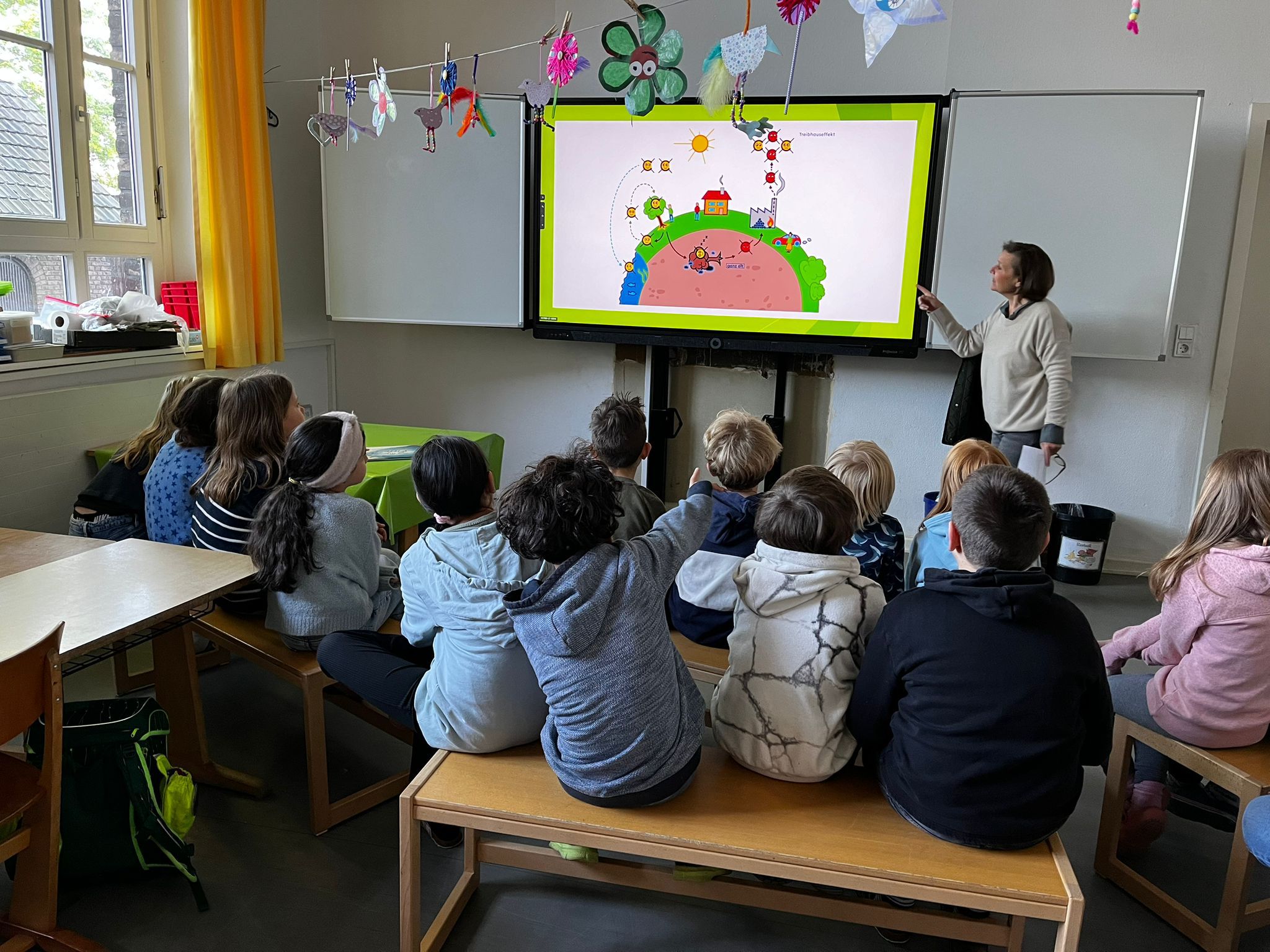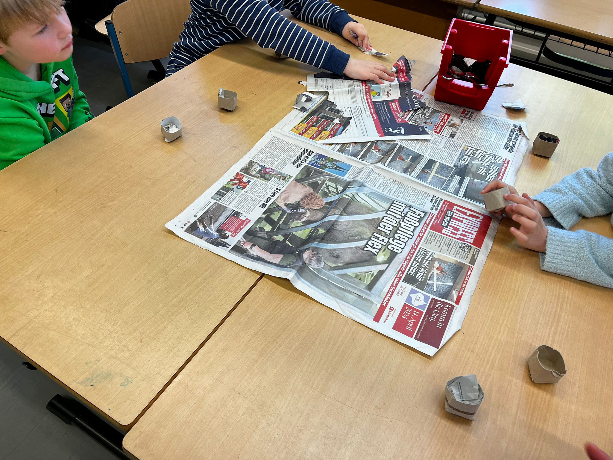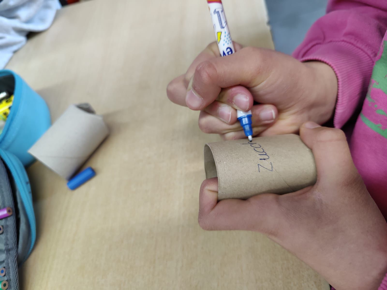 In einer Stationsarbeit haben wir überlegt, was wir in den verschiedenen Bereichen „Energie“, „Ernährung“, „Verkehr“ und „Müllvermeidung“ konkret tun können, um das Klima zu schützen. Eine dieser Maßnahmen haben wir dann direkt umgesetzt und kleine Anzuchttöpfchen gebastelt. Die Kinder konnten zwischen Sonnenblumen-, Zucchini- und Preisselbeersamen wählen. Ein Paar der bepflanzten Anzuchttöpfchen haben wir bei der Projektvorstellung am Ende der Woche für eine kleine Spenden an den „Bund für Umwelt und Naturschutz Deutschland gespendet“.