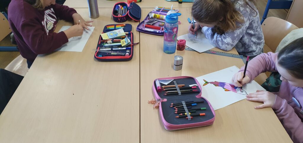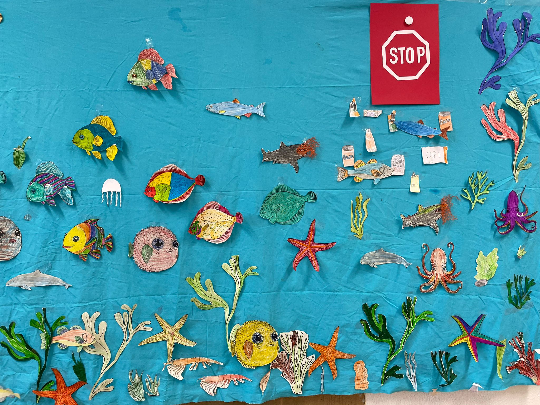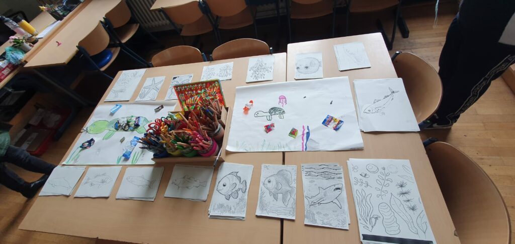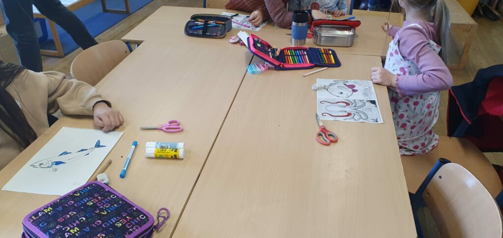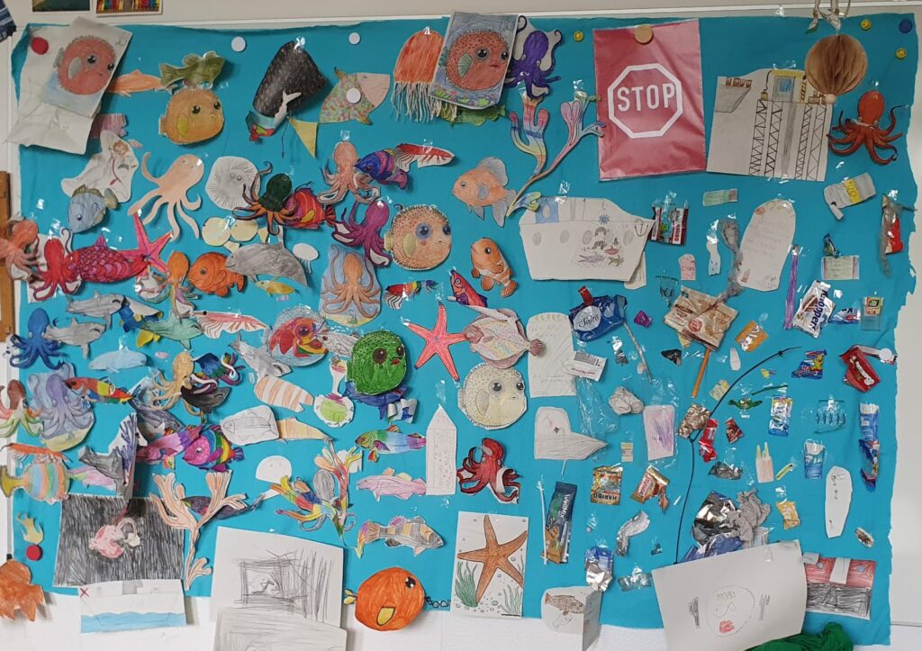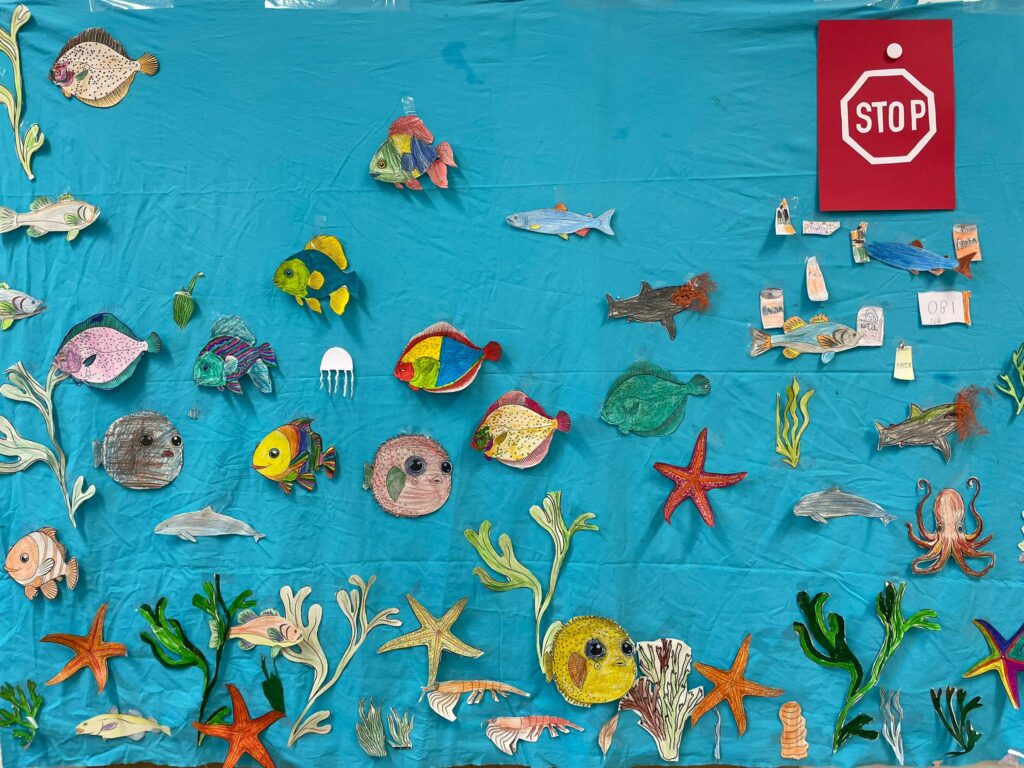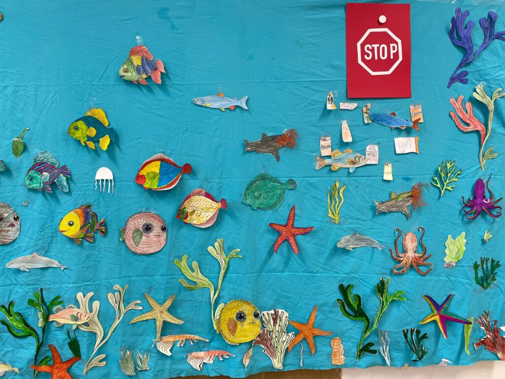 Wir haben viel über das Leben unter Wasser gelernt und was wir tun können, um dieses zu schützen. Weitere Themen waren Müll im Meer und Überfischung. Wir haben eine Unterwasserwelt Collage gebastelt und die Rheinkrake kennengelernt.